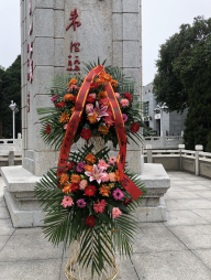 10月26日八时,学习小组从色色 (武汉)南望山校区化石林出发,10:20抵达鄂豫皖苏区首府烈士陵园。受邀出席本次活动的学院党委书记杨昌锐同志和院党委委员、学院院长杨树旺同志代表党支部向革命烈士纪念碑整理、敬献花篮,带领大家向革命烈士纪念碑三鞠躬,深切缅怀为中国革命事业英勇捐躯的革命先烈。