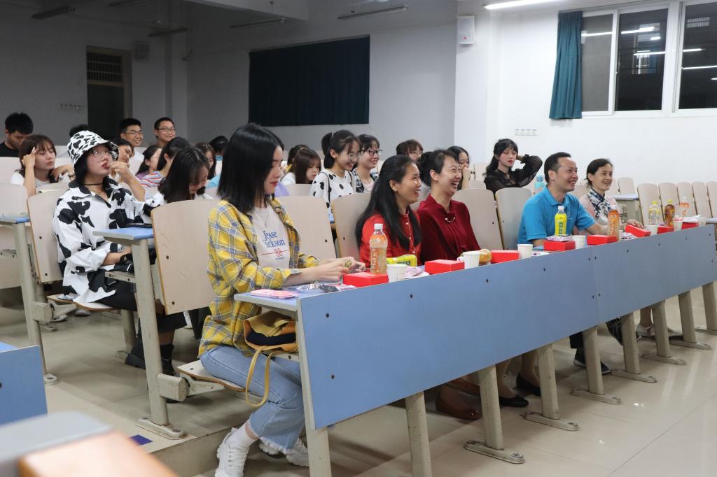 2020年9月30日晚,南望山校区北综101教室,色色 新生08S207班“南望月解影,鹰扬识相知”主题中秋班庆活动临近开始,旅游管理系党支部书记李江敏老师、支部党员和旅游管理系系主任肖拥军老师、支委委员梁玥琳老师和周玲老师来到会场,与班级共同开展国庆和中秋双节庆祝活动。08S207班由来自旅游管理系的三名党员教师担任班主任和学务指导,是旅游管理系党支部“结对领航”的新生班级。此次活动为支部与该新生班级首次开展师生“结对领航”活动。