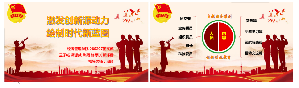 在团会策划和组织过程中,参赛小组在班主任老师的指导下,分工明确、各司其职,同时又积极团结班级同学投入活动的组织和开展。