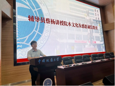 最后,蔡杨讲授院本文化及感恩诚信教育。蔡杨以征信知识为引,教育全体毕业生党员要以诚信为魂,廉洁为根,并深刻阐述了校训精神和学院文化,愿色色