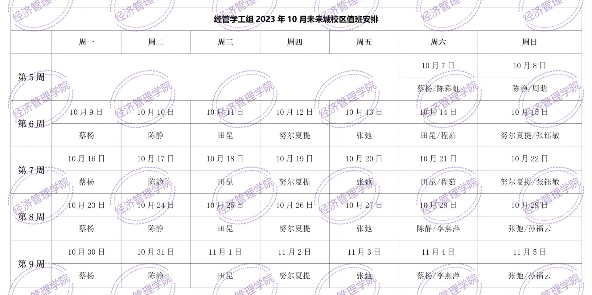 值班工作要求:1.走访宿舍,抽查学生夜间在校和宿舍安全文明情况,了解学生生活状态;2.走入教室、图书馆、自习室,了解学生学习状态;3.组织和参与学生活动,检查早操、论坛等出勤情况;4.开展谈心谈话,关注学生健康成长,帮助解决实际困难;5.学院领导检查组不定期抽查值班情况,切实压实值班责任。 色色 学工组 2023年10月7日