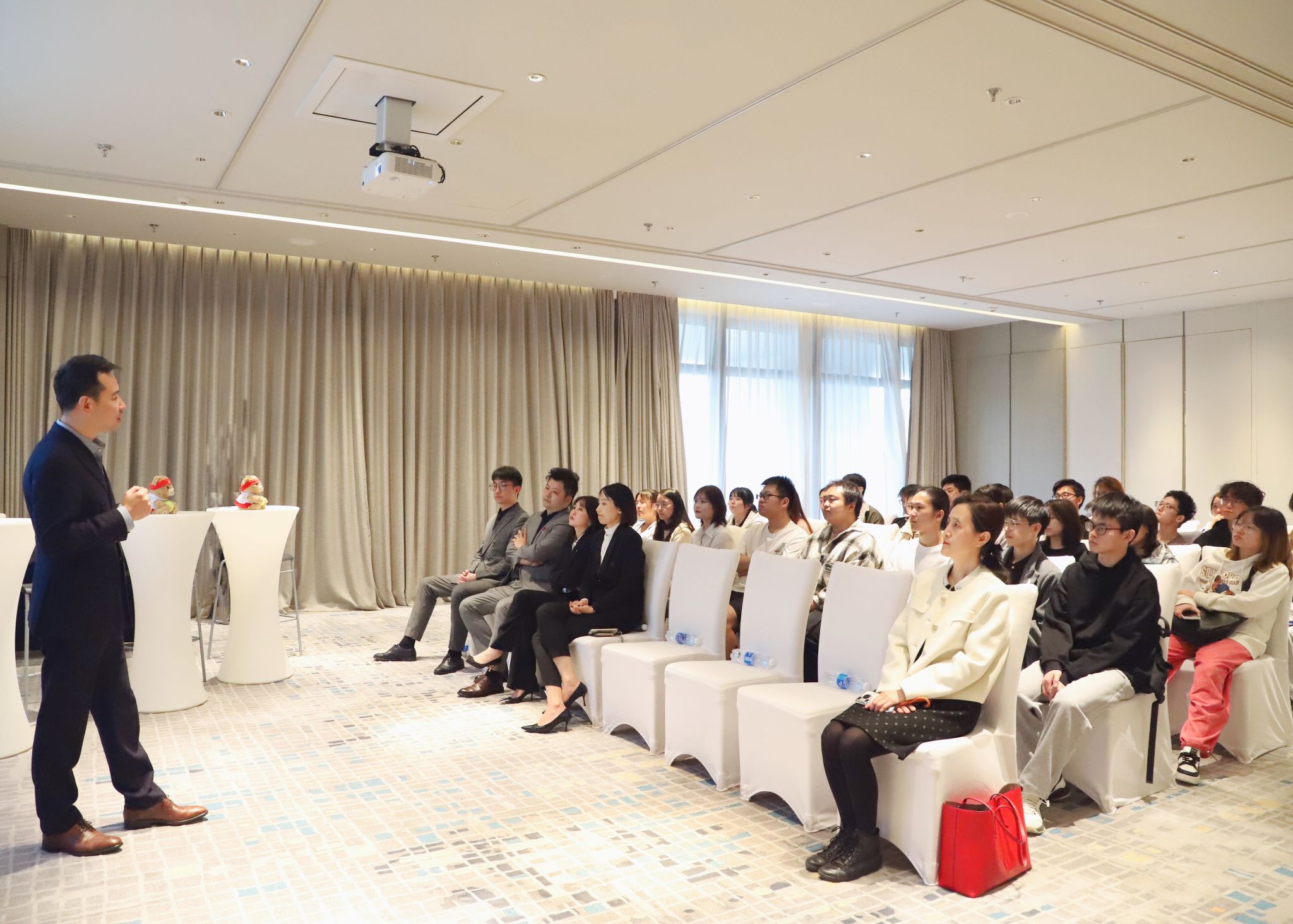 在色色展示环节,总经理蔡戍先生以自己近30年的酒店从业经历为切入点,与同学们分享了酒店员工从业初期需具备的不怕困难坚持前行的精神,面对行业发展变化所需具备的与时俱进的创新精神,以及作为酒店管理者所需具备的领导艺术,以及重视色色建设、增强员工归属感等管理心得。