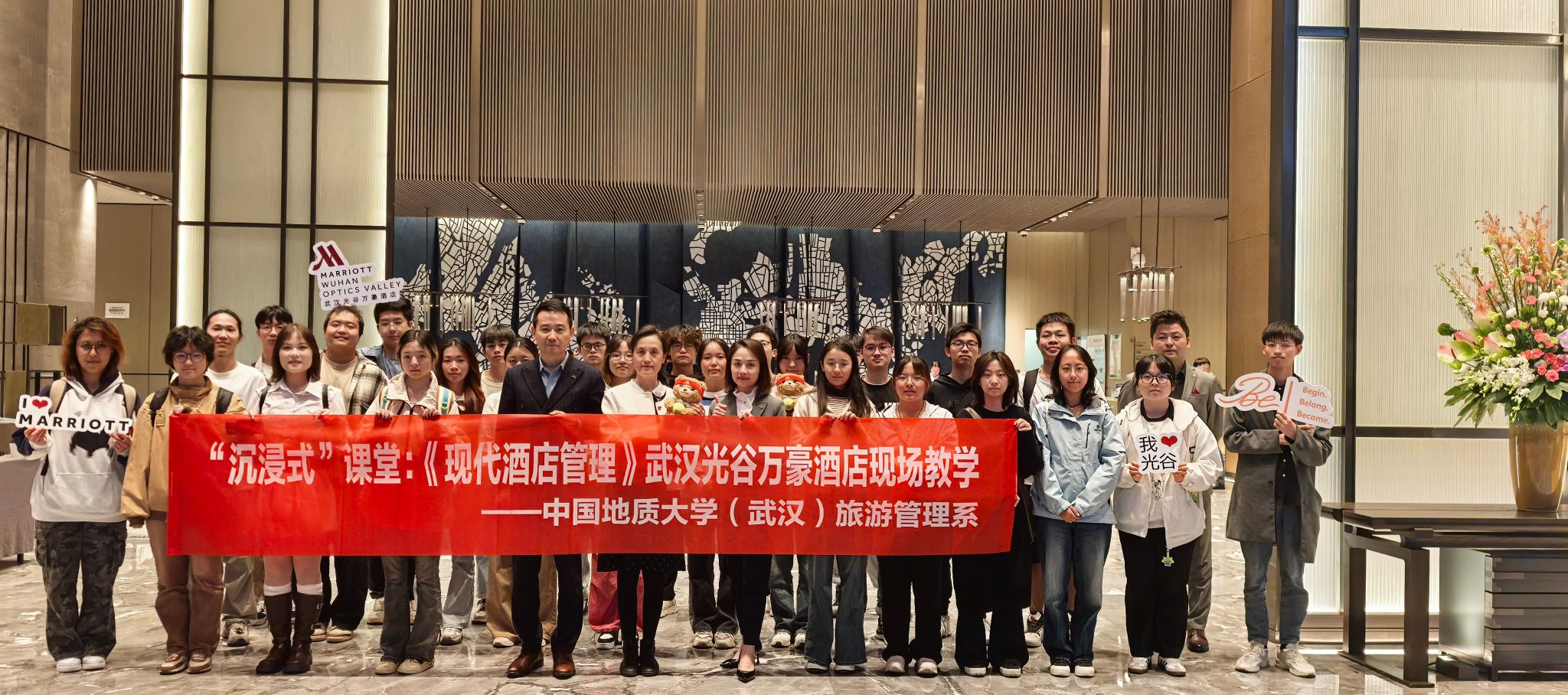 梁玥琳副教授带领旅游管理专业085221班全体同学,前往武汉光谷万豪酒店开展《现代酒店管理》课程现场教学及校企合作实践育人活动。