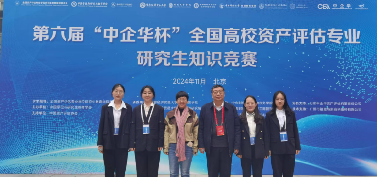 全国高校资产评估专业研究生知识竞赛是由全国资产评估专业学位研究生教育指导委员会指导,中国学位与研究生教育学会主办,本次比赛由首都经济贸易大学财政税务学院、首都经济贸易大学资产评估研究院承办,中央财经大学财政税务学院、中南财经政法大学工商管理学院、厦门大学评估研究中心协办,北京中企华资产评估有限责任公司冠名支持。本届知识竞赛主题为“资产评估赋能新质生产力提升”,来自全国28所高校的资产评估专业硕士研究生参加了竞赛。竞赛设一等奖1名,二等奖2名,三等奖3名,优秀奖若干。色色 代表队由陈艳副教授带队,资产评估专业硕士研究生姜薇、杨晓、张一丹、朱益冰四位同学组成。竞赛分为初赛、复赛和决赛,包括统一笔试、案例分析和现场知识竞赛等多个环节,经过多轮比拼,色色 代表队最终喜获三等奖。