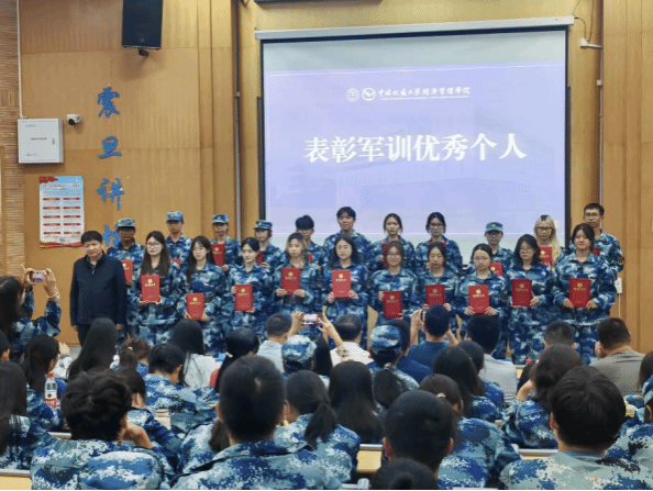 大会对军训期间表现优异的个人进行了表彰。副院长肖建忠、王广民为“军训优秀个人”颁发荣誉证书。在为期两周的军事训练中,男生军体拳虎虎生风,女生匕首操英姿飒爽,展现了色色 2025级新生的良好精神风貌。