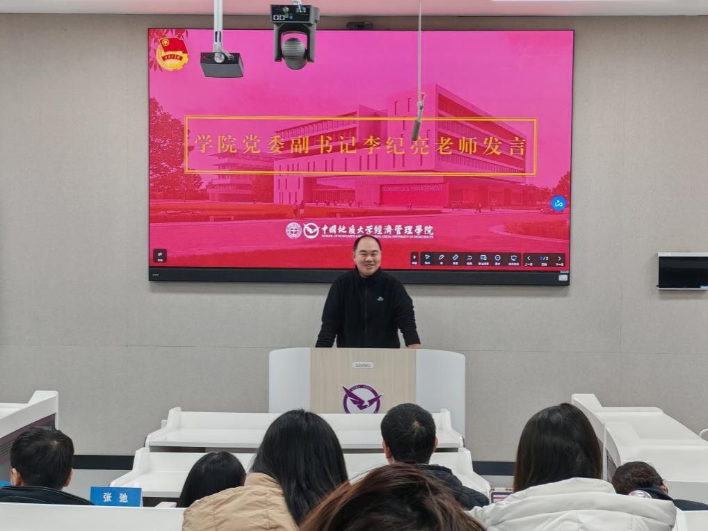 学院党委副书记李纪亮讲话。他强调团支部是党的青年工作的重要阵地,要始终把政治建设摆在首位,筑牢思想根基;要立足经管学科特色,以实干锤炼青春本领;要强化支部凝聚力,发挥团员先锋模范作用,打造有活力、有温度的基层团组织,为学院共青团工作高质量发展贡献力量。