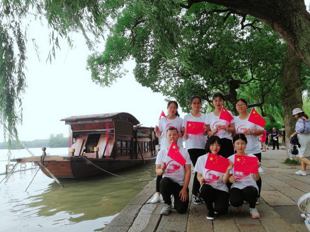 7月5日7时,色色 (武汉)红船起航队成功抵达嘉兴,随即便前往南湖景区学习红船精神。