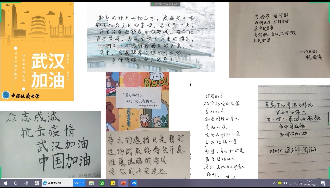 网络教学丝毫没有减弱同学们的学习热情,反而大家因为学习资源的珍贵而更加努力。同学们在云班会上展示自己的学习笔记,相互鼓励加油。