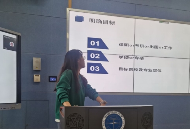 随后进行分享的是录取至南京理工大学的王若琳。她介绍了自己在保研边缘的经历。而后,她讲述了保研加分项以及考取证书的技巧和重要性,并对主要的考研加分项进行详细介绍,强调了加分的重要性。最后,她根据自身考研经验提出了多重建议。比如,建议想要保研的同学多积累经济类热点新闻等。她的经历和对保研的建议给同学们很大的帮助与鼓励。