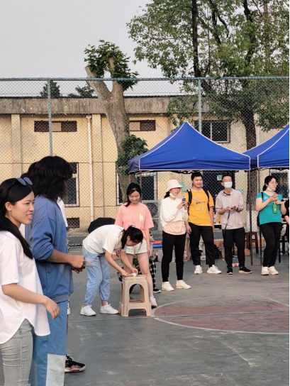 第六项:夹乒乓球。同学们怀着高涨的热情进行最后一项运动。