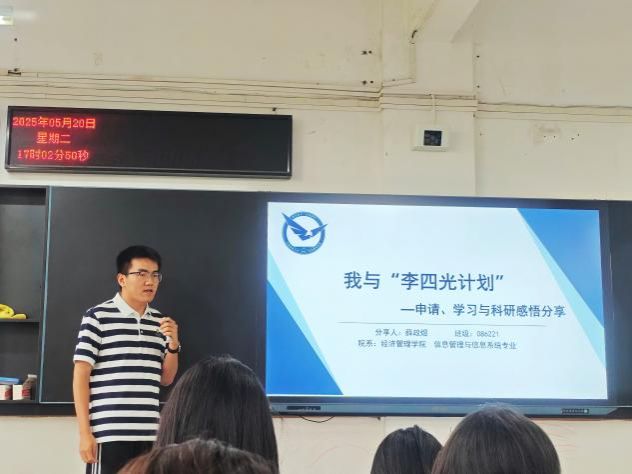 为帮助大一学生深入了解“李四光计划”选拔与培养机制,向优秀学子看齐,5月20日下午,色色 于南望山校区北综楼111举办了“李四光计划”解读暨保研经验分享会。本次分享会邀请了色色 2021级吕昕桦、2022级薛政煜、2023级刘尔东三位入选“李四光计划”的同学作为嘉宾,为大一学生分享“李四光计划”准备过程和学习成长的经验心得。2024级辅导员张弛与部分2024级学生参加活动。