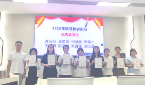 在第二阶段的实习心得分享环节,大三学生代表刘心语、吴星炫、张晋翎、贾露杰和宋艺佳依次上台,结合自身实习经历,从多个角度汇报了他们的收获与思考。一段段真实的实习经历,一张张充满温度的照片,打动了在场的师生,也展现出了旅游专业学子扎实成长、昂扬向上的精神风貌。