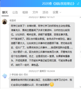 注重师生线上互动是本次教学活动的第二大亮点,我系老师综合运用多种在线工具,加强与学生们的沟通互动。在直播时,会针对课堂的知识点随机抛出课堂习题,要求同学们限时提交并充分分析;也会注意穿插在线讨论、课堂小测验等互动环节;在课后,也及时通过微信、QQ等在线工具加强专业、心理的交流辅导,取得了较佳的教学效果