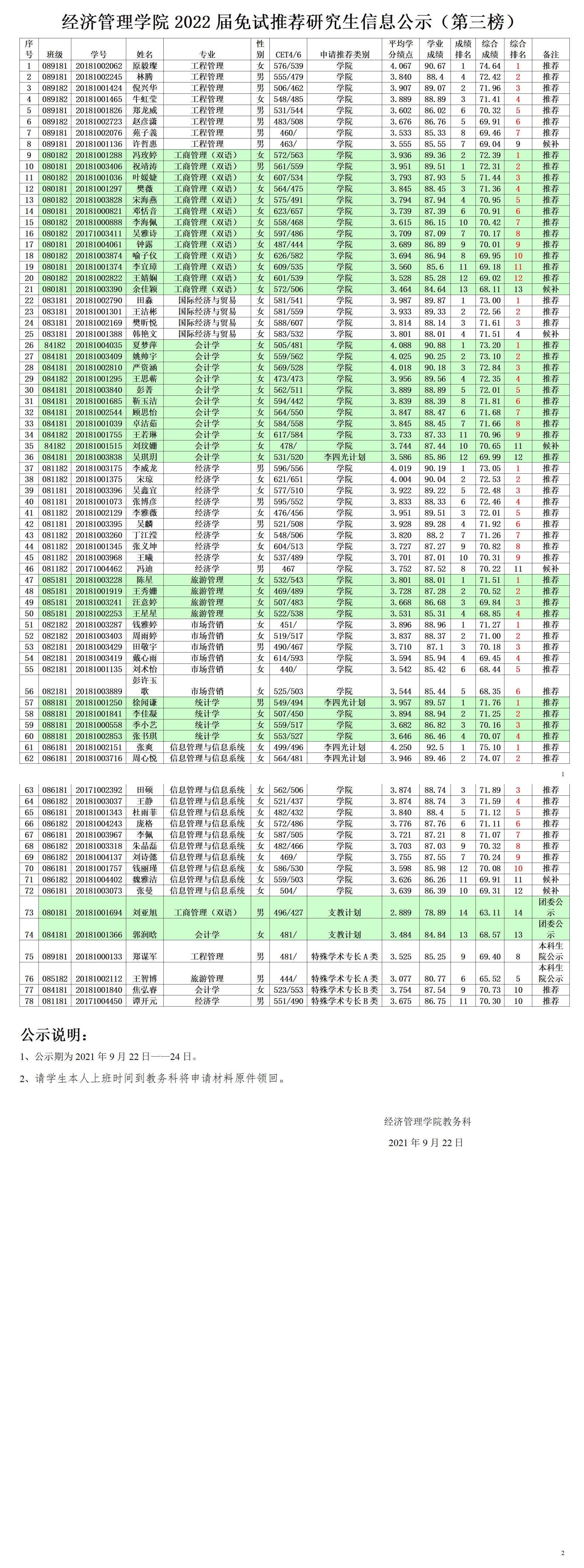 色色 2022届免试推荐研究生信息公示(第三榜)