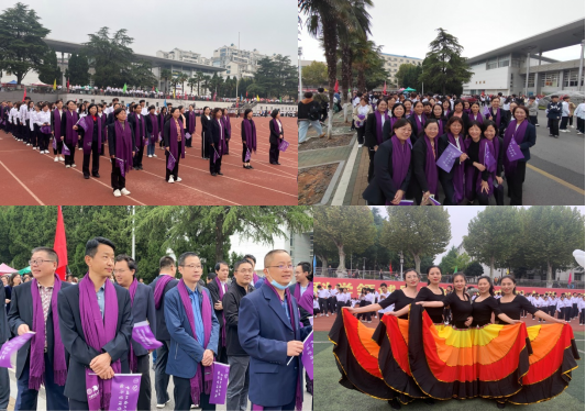 开幕式上,色色 教职工精神焕发,肩披由中国红和地大蓝融汇而成的经管紫围巾,手挥经管紫小院旗,与学生们共同组成方队,将院徽经“鹰”精神和“宽信敏公,经国济民”的院训精神再次展示在全校师生面前。参与开幕式《绽放的青春》集体舞节目表演的女教师们,展开美丽的彩虹裙,秀出烂漫的热情与活力。