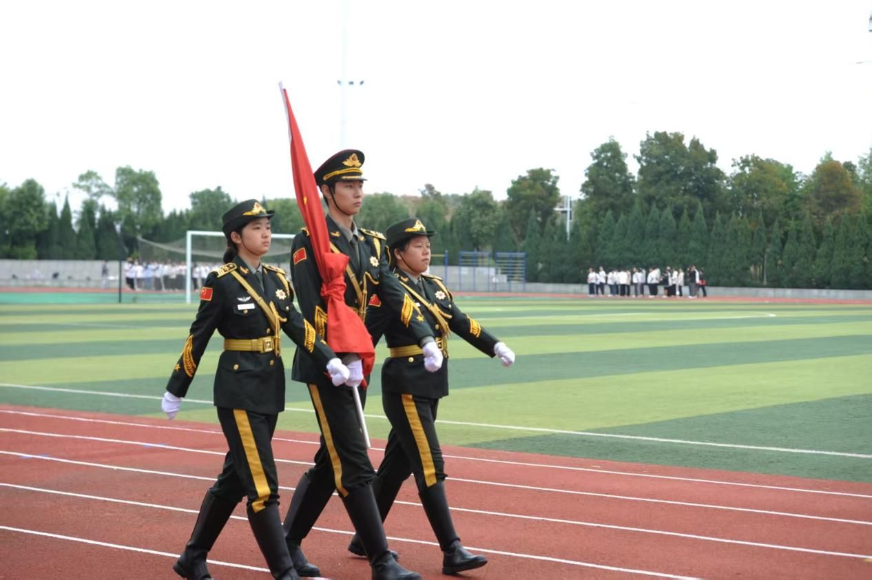 国旗班队员身着整齐制服,身姿挺拔、英姿飒爽,迈着铿锵有力、整齐划一的步伐,郑重护送国旗与院旗步入会场。伴随着激昂的旋律,各方阵英姿飒爽、意气风发,迈着整齐的步伐,喊出响亮的口号,依次走过主席台。