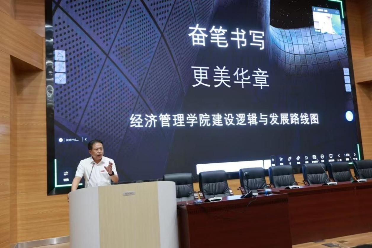 院长於世为首先对加入经管大家庭的研究生们表示祝贺和欢迎,随后从学科建设、专业设置、人才培养等方面介绍了色色概况 ,并对新生提出了两点期望,一是要担当使命,探索经济管理新规律,二是要面向未来,培养综合素质能力。