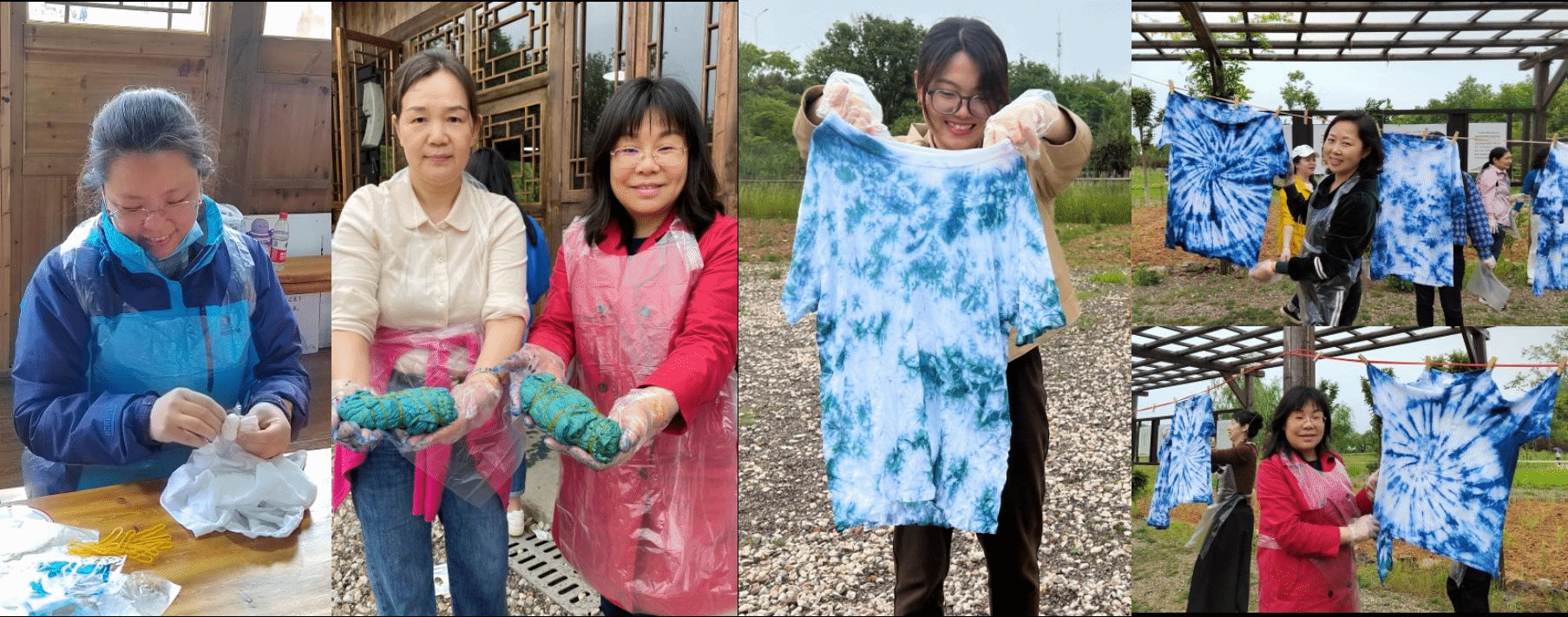 汉族非遗扎染技艺体验则让每位员工和家人带着好奇心过了一把艺术瘾,领略了扎染的艺术魅力。无论是胸有丘壑、精心设计图案而扎橡皮筋,抑或是突发奇想、无心插柳般地随性扎橡皮筋;无论是几秒钟的点浸染色,抑或是耐心长时间的浸泡染色,解开扎着的橡皮筋之前,每个人都不知道自己在T恤上作了怎样的一幅画。展开作品的一刹那,绿色迅速被氧化成蓝色,每个人都惊讶地发现,原来自己很有艺术家的潜质呢!