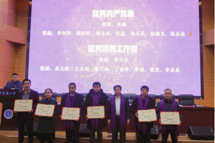 学院领导对湖北省高校党建工作标杆院系、学校先进基层党组织、学院先进基层党组织、干部成就奖、湖北省教学成果奖、一流专业建设贡献奖、科研奖、教材专著奖、学院信息化建设先进集体、体育运动集体奖、国际化发展奖、期刊分类贡献奖、文化建设奖、优秀共产党员、优秀党务工作者、工会积极分子、优秀班主任奖、青年教师讲课比赛奖、学校教学创新比赛奖、年度考核优秀等集体和优秀个人予以了表彰。