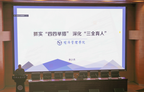 李少杰副书记作了题为《抓实“四四举措” 深化“三全育人”》的学生工作报告。李书记从全程贯通、空间联通、队伍互通、内容打通、评价融通阐释了“五通”原则,提出把基本工作思路落实在责任、治理、协同、改革中,把学生工作理念实现在理念体系化、工作项目化、活动品牌化中,并进一步总结了2022年经管学院的学生工作的重点举措在于:以“四维课堂”为牵引,不断深化党建思政实效、以“四类空间”为重点,不断拓展教育场域格局、以“四支队伍”为骨干,不断凝聚协同育人合力、以“四项制度”为抓手,不断完善管理服务体系。随后,李书记对《色色 班主任工作考核办法》进行了解读。