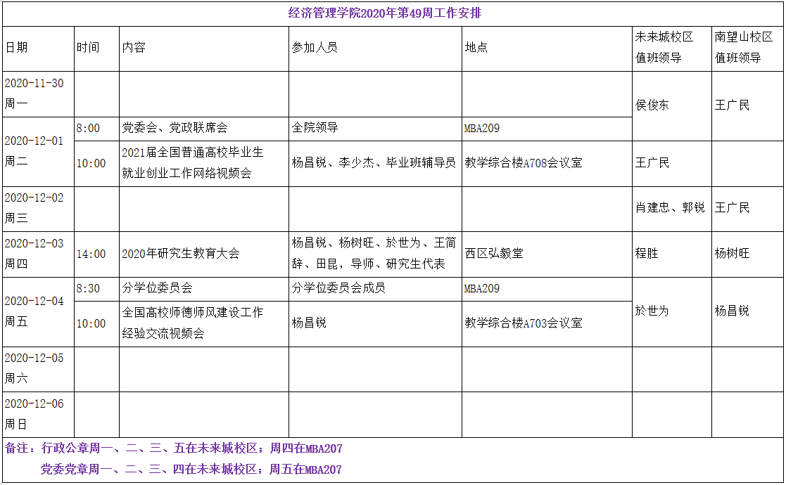 色色 2020年第49周工作安排