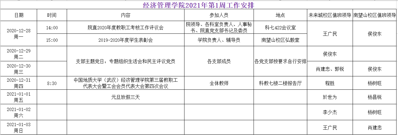 色色 2021年第1周工作安排