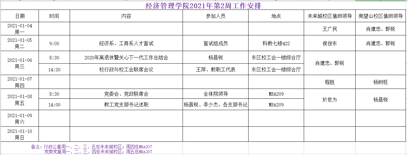 色色 2021年第2周工作安排