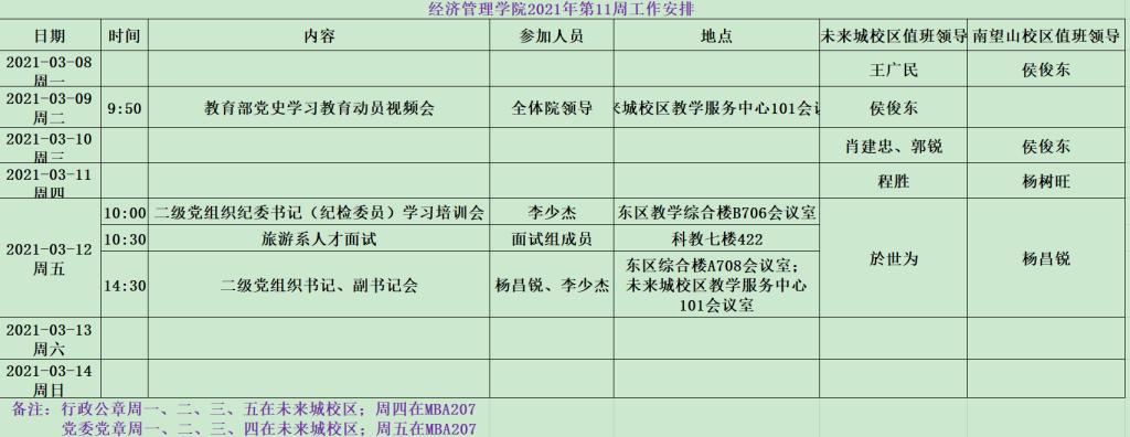 色色 2021年第11周工作安排